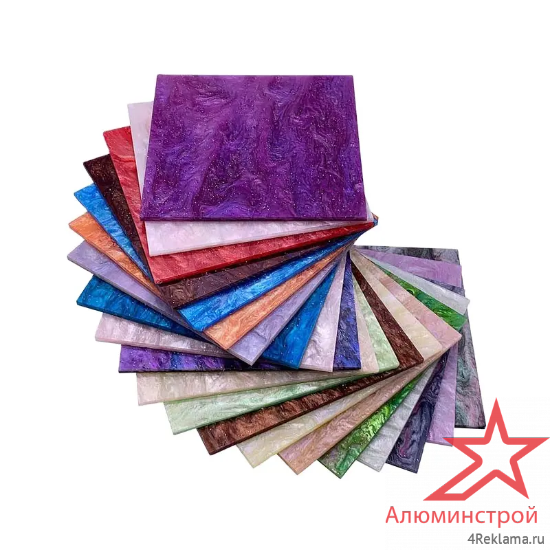 Непрозрачное оргстекло с текстурой "перламутр" широко используется в дизайне и рекламной отрасли.